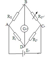 惠斯通電橋(又稱(chēng)單臂電橋)是一種可以精確測(cè)量電阻的儀器。右圖所示是一個(gè)通用的惠斯通電橋。電阻R1,R2,R3,R4叫做電橋的四個(gè)臂,G為檢流計(jì),用以檢查它所在的支路有無(wú)電流。當(dāng)G無(wú)電流通過(guò)時(shí),稱(chēng)電橋達(dá)到平衡。平衡時(shí),四個(gè)臂的阻值滿足一個(gè)簡(jiǎn)單的關(guān)系,利用這一關(guān)系就可測(cè)量電阻。