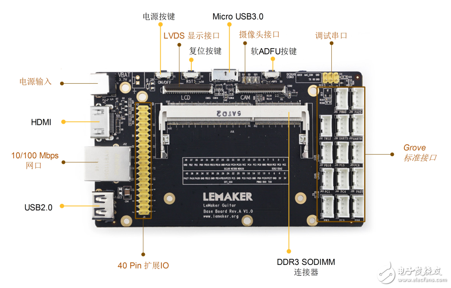豐了,中午只能把它啃了?。:4:}{:4:}{:4:}底板和核心板LeMaker Guitar采用了204-Pin DDR3SODIMM標(biāo)準(zhǔn)接口官方介紹,整體性能LeMaker Guitar比