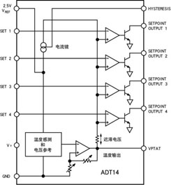 17 多功能芯片ADT14既是一種輸出邏輯電平控制型號(hào)的多點(diǎn)溫度監(jiān)視器,又是一種輸出模擬電壓信號(hào)的溫度傳感器,本文系統(tǒng)會(huì)面地介紹了ADT14的特點(diǎn)、用途、內(nèi)部結(jié)構(gòu)、引腳功能、電氣