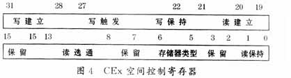 DSK板上具有與EMIF相連的外擴(kuò)展子卡接口,它原本是用來擴(kuò)展片外存儲(chǔ)器的硬件接口,可以為多種同步和異步存儲(chǔ)器(如SBSRAM、SDRAM、SRAM、ROM、FIFO)提供無縫接口,由于其數(shù)據(jù)傳輸速度很快(可以高達(dá)900Mbyte/s),所以,可以用來與高速模數(shù)轉(zhuǎn)換器接口。EMIF是外部存儲(chǔ)器和C6211片內(nèi)其它單元的接口,具有很強(qiáng)的接口能力。其數(shù)據(jù)總線寬度為32bits,尋址空間為4GB,可以與目前幾乎所有類型的存儲(chǔ)器直接接口。EMIF處理的外總線請(qǐng)求有片內(nèi)EDMAExtended Direct Mernory Access控制器和外部共享存儲(chǔ)器的設(shè)備。對(duì)EMIF的控制是通過設(shè)置EMIF中的一組存儲(chǔ)器映射寄存器完成的,包括配置各個(gè)空間上的存儲(chǔ)器類型,設(shè)置相應(yīng)的接口時(shí)序等。當(dāng)EMIF與異步器件接口時(shí),整個(gè)異步接口信號(hào)包括#AOE、#AWE、#ARE、ARDY四個(gè)控制信號(hào)。在時(shí)序控制上,通過在EMIF全局控制寄存器和相應(yīng)的CEx(x是0~3)空間控制寄存器中進(jìn)行靈活的參數(shù)配置,完成與不同器件的時(shí)序接口。有關(guān)控制位如圖4所示。