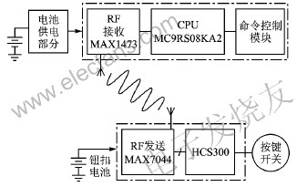 描述RKE系統(tǒng)的工作原理及系統(tǒng)在功耗、穩(wěn)定性、RKE發(fā)送和接收范圍等性能設(shè)計(jì)上的獨(dú)到之處;使用Freescale公司的高性能、小封裝微處理器MC9RS08KA2,結(jié)合Maxim公司的收發(fā)IC設(shè)計(jì)射