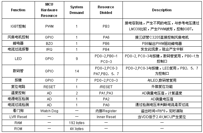 利用SPMC65P2404A的這些資源,能夠份方便的實(shí)現(xiàn)電磁爐的功能。