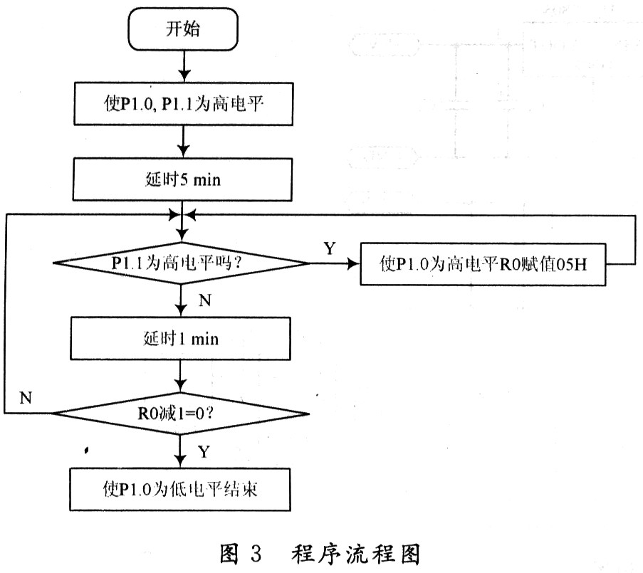 4 開始通過手動(dòng)鍵給單片機(jī)供電。直到電源指示燈LED4亮.單片機(jī)運(yùn)行,繼電器2工作給單片機(jī)供電。通過按鍵設(shè)置繼電器2的工作時(shí)間,實(shí)現(xiàn)系統(tǒng)的自動(dòng)斷電,通過設(shè)置繼電器1的工作時(shí)間,實(shí)現(xiàn)風(fēng)扇的間歇轉(zhuǎn)動(dòng),實(shí)現(xiàn)節(jié)能。