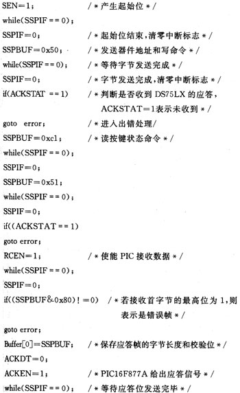 DS75LX為Maxim公司生產(chǎn)的數(shù)字溫度傳感器,具有測溫范圍寬且分辨率可調(diào)等特點(diǎn)。介紹了DS75LX的特點(diǎn)、結(jié)構(gòu)與工作原理以及與PIC單片機(jī)的硬件接口,同時給出了部分程序代
