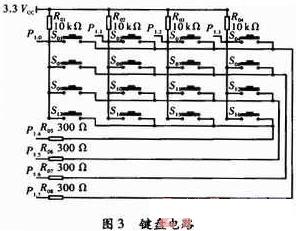 性能指標(biāo)如下:濕度測量范圍:0~100% RH;溫度測量范圍:-40~123.8 ℃;濕度測量精度:±4.5% RH;溫度測量精度:±0.5 ℃;低功耗為80 μW,滿足系統(tǒng)的監(jiān)控要求?! ?.4 鍵盤