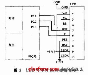 AT89C52 主控模塊、LCD 顯示模塊、串行口通信模塊、DS18B20 溫度檢測模塊等。其中AT89C52 主要完成外圍硬件的控制以及一些運(yùn)算功能,LCD 顯示模塊完成字符、數(shù)字的顯示功能