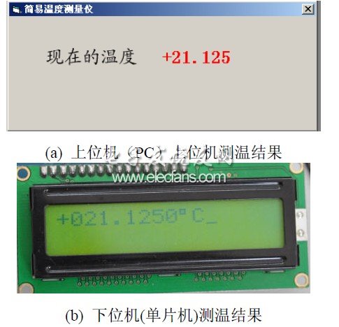 包括:整體架構設計、下位機底層硬件和軟件的具體實現(xiàn)、PC 串口上位機軟件設計,較好地達到了預期目的。系統(tǒng)實物圖如圖4 所示,前后臺溫度顯示如圖5(a)、圖5(b)所示。