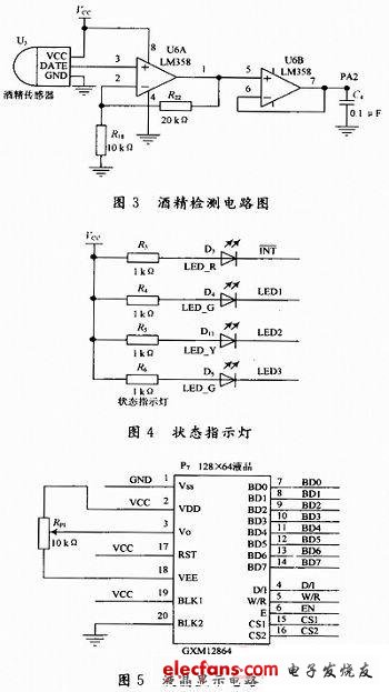 75 為了檢測(cè)駕駛員呼出氣體的酒精濃度,避免酒駕造成交通事故,設(shè)計(jì)一種以氣敏傳感器和ATmega16單片機(jī)為主的防酒駕系統(tǒng)。通過(guò)酒精傳感器MQ-3檢測(cè)車(chē)內(nèi)空氣中的酒精含量,把檢測(cè)的信息送單片機(jī)進(jìn)行處理。若
