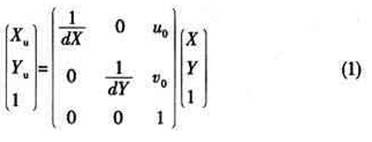 8482 建立攝像機(jī)的模型,在Tsai方法基礎(chǔ)上,改進(jìn)算法,對(duì)攝像機(jī)的內(nèi)、外部參數(shù)進(jìn)行了標(biāo)定。試驗(yàn)結(jié)果表明,該方法明顯好于傳統(tǒng)的Tsai方法,可以準(zhǔn)確得到水平方向不確定比例因素s。再結(jié)合Tsai方法,可以準(zhǔn)確獲得其余的標(biāo)定參數(shù)。