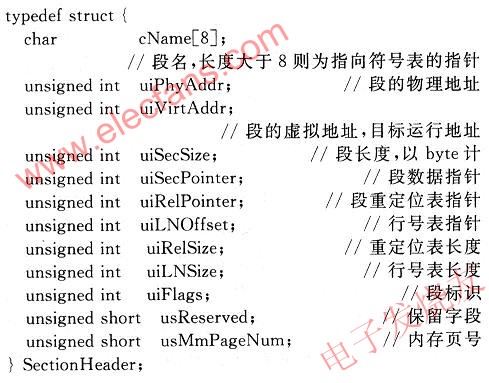 cName用來(lái)保存段名,常用的段名有.text,.da—ta,.bss等。對(duì)于用戶自定義長(zhǎng)度超過(guò)8 B的段名,則為指向符號(hào)表的指針。