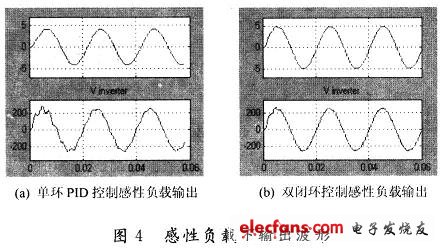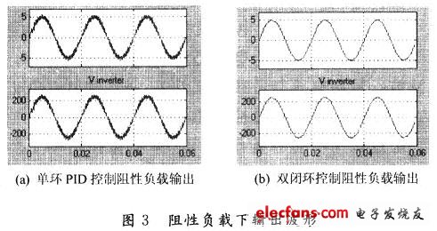 15 方案將無(wú)差拍控制的瞬時(shí)響應(yīng)快,精度高和PI控制簡(jiǎn)單,參數(shù)易整定,魯棒性好等優(yōu)點(diǎn)相結(jié)合,能夠得到更優(yōu)的控制效果。最后的仿真試驗(yàn)表明,采用數(shù)字雙閉環(huán)控制方法的逆變器具有輸出波形好,響應(yīng)快和負(fù)載適應(yīng)能力強(qiáng)等優(yōu)點(diǎn)。