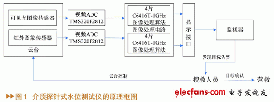 條件。而紅外圖像傳感器具有穿透煙、霧、霾、雪等能力,可彌補(bǔ)這一不足,因此采用紅外、可見光成像和DSP圖像處理系統(tǒng)構(gòu)成的光電搜索系統(tǒng)