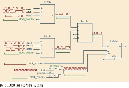 如果設(shè)計(jì)的某個(gè)部分可以處于非活動(dòng)狀態(tài),則可以考慮使用一個(gè) BUFG-MUX 來禁止時(shí)鐘樹翻轉(zhuǎn),而不是使用時(shí)鐘使能。時(shí)鐘使能將阻止寄存器進(jìn)行不必要的翻轉(zhuǎn),但時(shí)鐘樹仍然會(huì)翻轉(zhuǎn),消耗功率。不過采用時(shí)鐘使能總比什么措施也沒有強(qiáng)。