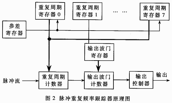 根據(jù)以上分析,為了實現(xiàn)各種PRI類型信號的實時跟蹤,在FPGA中設(shè)計了脈沖重復(fù)頻率跟蹤器電路,其原理圖如圖2所示。