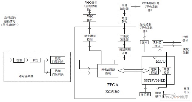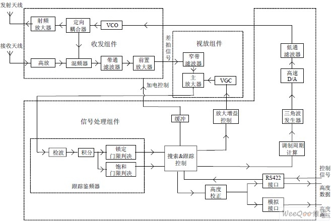 本文介紹了一種新型調頻連續(xù)波高度表,主要創(chuàng)新點在于:采用了FPGA/單片機的硬件 平臺,通用性強,并具備現(xiàn)場軟件升級能力;通過軟件算法實現(xiàn)了高度搜索、高度跟蹤、STC、AGC等功能,改變信號處理