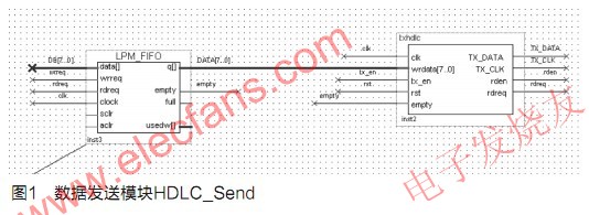 HDLC的數(shù)據(jù)發(fā)送時鐘tx_clk由外部輸入時鐘分頻得到,能以高于比特發(fā)送的速度執(zhí)行對內(nèi)部操作。