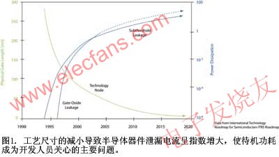 工藝尺寸不斷縮小的結(jié)果之一是導(dǎo)致待機(jī)功耗成為芯片總功耗中的重要因素。同時(shí),芯片用戶關(guān)心的問題從動(dòng)態(tài)功耗轉(zhuǎn)向待機(jī)功耗。由于待機(jī)功耗的增大,許多通信器件分開考慮總功耗預(yù)算和待機(jī)功耗預(yù)算,并逐步增加待機(jī)功耗預(yù)算的比例。由于這些器件大部分時(shí)間處于待機(jī)模式,因此,待機(jī)功耗成為最主要的問題。