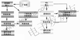 Top-Down設(shè)計流程如圖2所示,其核心是采用HDL語言進(jìn)行功能描述,由邏輯綜合(Logic Synthesis)把行為(功能)描述轉(zhuǎn)換成某一特定FPGA/EPLD的工藝網(wǎng)表,送到廠商的布局布線器完成物理實(shí)現(xiàn)。在設(shè)計過程的每一個環(huán)節(jié),仿真器的功能驗(yàn)證和門級仿真技術(shù)保證設(shè)計功能和時序的正確性。