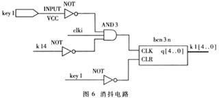 按鍵的消抖也通過計數(shù)器來實現(xiàn),電路原理圖如圖6所示。