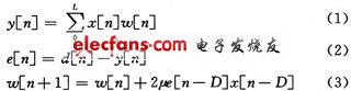 應(yīng)用于自適應(yīng)控制、雷達(dá)、系統(tǒng)辯識和信號處理等領(lǐng)域。最小均方(LMS)誤差算法是由Widrow和Hoff于1960年提出的,其具有簡單性、魯棒性和易于實現(xiàn)的性能,因此在自適應(yīng)濾波原理中得到了很好的應(yīng)用。自適應(yīng)濾波原理如圖1所示?;谧钏傧陆捣ǖ淖钚【秸`差算全文下載