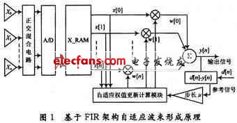 橫向LMS算法是實現(xiàn)自適應(yīng)數(shù)字波束形成的基本方法之一。提出了一種用Matab/Simulink中DSP Builder模塊庫設(shè)計算法模型,然后應(yīng)用FPGA設(shè)計軟件Modelsim 、QuartusII分析自適應(yīng)濾波