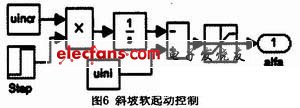 0 該軟起動裝置的工作原理是通過控制晶閘管的觸發(fā)角來控制輸出電壓的大小,滿足電機起動過程中不同的電流及電壓要求。在電機起動過程中,按照預先設(shè)定的起動曲線,增加電機的端電壓,使電機平滑加速,從而減少電機