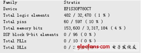 使用Altera 公司的STRATIX 芯片進(jìn)行編譯、綜合,所得的資源占用結(jié)果如圖6 所示。