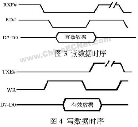 設(shè)計(jì)的一個(gè)很小的部分,如果仍采用傳統(tǒng)的設(shè)計(jì)方法實(shí)現(xiàn),那么將耗費(fèi)較多的時(shí)間和精力,而且最終也未必能獲得理想的效果。為了擺脫常規(guī)USB數(shù)據(jù)接口設(shè)計(jì)的難度,加快系統(tǒng)開發(fā)進(jìn)程,我們引入了基于FT245BM的快速USB接口設(shè)計(jì),使系統(tǒng)開發(fā)節(jié)奏加快,保證整套系統(tǒng)設(shè)計(jì)周期的縮短。
