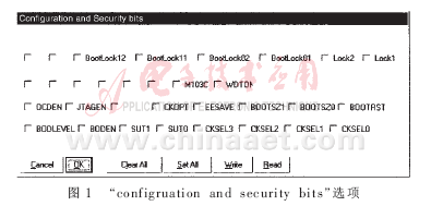 這里采用PonyProg2000中“configruation and security bits”菜單命令來進行設置,其界面如圖1所示。
