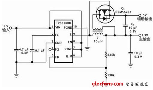 考慮下述之SEPIC(單端初級電感變換器)電路,但是成本將會因此明顯上升。當然,在這兩類電路中,同樣有著上述之外接或在片功率開關以及異步或同步整流的區(qū)別。 如果USB外設需要5V電源,事情就稍為有些棘手,因為USB口的外供電壓可能略高于也可