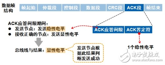 4360 在觀察CAN通信波形時,我們會發(fā)現(xiàn)差分電平在ACK段突然增高,這是什么原因?qū)е碌哪??本文結合測試實例對ACK電平偏高的原因做簡單分析。ACK簡介ACK的作用:確認一幀報文是否正常接收。以標準數(shù)椐幀為