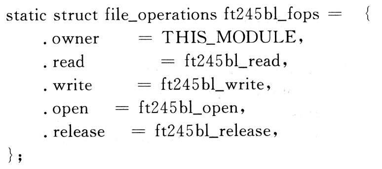 ??? 該驅(qū)動(dòng)文件ft245b1.C中定義的file_operations數(shù)據(jù)結(jié)構(gòu):