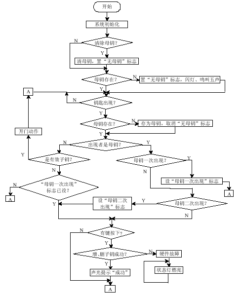 管理射頻鑰匙一般采用授權發(fā)卡體系或卡片分級體系。為了 兼顧安全性和易使用要求,采用母鑰-子鑰二級模式管理鑰匙。母鑰的作用相當于一個系 統(tǒng)操作密碼,由它對開門鑰匙(集子鑰)的添加和刪除進行限制。
