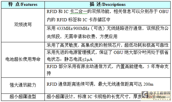 ????? ※ 車載電子標(biāo)簽――可選用金溢DC200型雙頻電子標(biāo)簽(OBU);