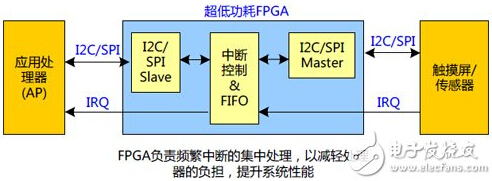 多點(diǎn)觸摸會(huì)在同一時(shí)間產(chǎn)生大量的中斷給應(yīng)用處理器,大量中斷的產(chǎn)生會(huì)影響處理器的性能。而低功耗FPGA就可以很好的解決這一問(wèn)題:對(duì)同一時(shí)間的多個(gè)中斷進(jìn)行存儲(chǔ)和管理,按優(yōu)先級(jí)將中斷傳送給處理器,以減輕處理器的負(fù)擔(dān)。