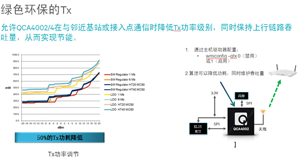 高通將在2015物聯(lián)網(wǎng)技術(shù)與創(chuàng)新應(yīng)用大會(huì)上演說IoE互聯(lián)家庭解決方案的內(nèi)容,其中包括QCA4002/4的應(yīng)用,對(duì)于高通QCA4002/4在與鄰近基站或接入點(diǎn)通信時(shí)降低Tx功率級(jí)別,同時(shí)保持上行鏈路吞吐量,從而實(shí)現(xiàn)節(jié)能。以下是其演講PPT中的選段:
