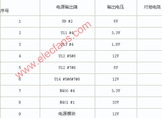(二)指標(biāo)要求 下表列出各電源輸出端電壓及對地電阻,供維修時參考: