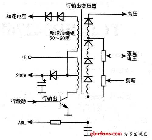 2196 191#連線由原高壓包磁芯處改接行變高壓調(diào)整電位器接地端,這樣行變磁芯懸空,它所感應(yīng)的高壓引起行變初級(jí)①、③兩腳間跳火。二、由于原機(jī)高壓分配盒聚焦調(diào)整電位器下端已通過電阻接地,行變高壓高速民位器的并入