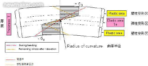 下圖1說明彎曲鋼板時,鋼板厚度內(nèi)應(yīng)力的演變;上表面被拉伸,下表面被壓縮。