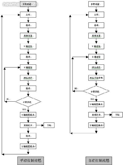主程序采用步進(jìn)指令實(shí)現(xiàn),減少誤動(dòng)作的發(fā)生,簡(jiǎn)單明了,邏輯清晰。在控制精度保證上,整個(gè)程序的運(yùn)算全部采用浮點(diǎn)數(shù)運(yùn)算,減少計(jì)算誤差,如:孔間距、Y軸進(jìn)給距離、手動(dòng)速度、自動(dòng)送料的速度等的設(shè)定,在換算成脈沖數(shù)或者脈沖頻率的過(guò)程中,全部采用浮點(diǎn)運(yùn)算。經(jīng)過(guò)實(shí)際驗(yàn)證,計(jì)算誤差小于0.001mm。