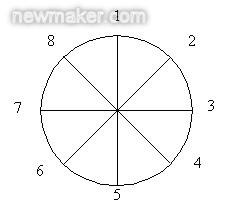 偶數(shù)以一個8個刃數(shù)的銑刀為例,每個溝槽的加工順序是1,5,2,6,3,7,4,8。即第一刃加工完成后,第一刃的起刀點與下一刃起刀點角度差為A,下一刃加工完成后這一刃的起刀點與后一刃的起刀點角度差為B,以此類推直到加工到最后一刃完成,如圖2所示。