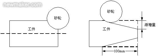 (2)砂輪漸增量進(jìn)給控制。工件在加工過程中,溝槽深度是逐漸變淺的一個過程。漸增量是指工件送進(jìn)100mm時,砂輪提升的高度,如圖4所示。