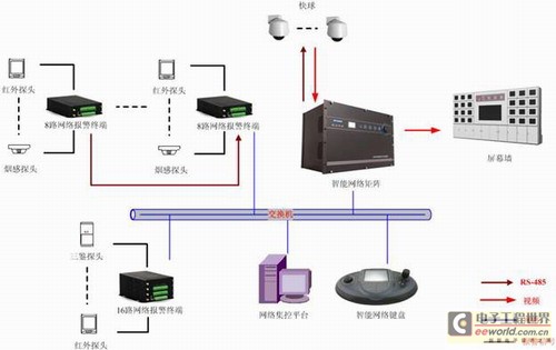 ????? 由于能夠大幅減少用戶布線施工的難度,并提高報警信息傳輸?shù)臏?zhǔn)確性和實時性,目前搭配該產(chǎn)品的視頻監(jiān)控系統(tǒng)(如圖3)已經(jīng)在監(jiān)獄勞教所、居民社區(qū)和智能樓宇項目中得到批量應(yīng)用。此外,對于電力無人值守機(jī)房的遠(yuǎn)程管理也能起到幫助。