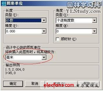 2、明確自己在模型空間繪圖所使用的單位,比如用毫米為單位,那么1米就要用1000個CAD單位,用厘米為單位,那么1米就要用100個CAD單位,需要說明的是,在CAD中設(shè)定的所謂的“繪圖單位”是沒有意義的,繪圖的單位應(yīng)該是在使用者心中,這也是CAD靈活的一個方面,因為這樣在CAD中繪制一條長度為1的線段,可以代表任何一個單位長度。比如右圖設(shè)置的“毫米”我們大可不必理會。