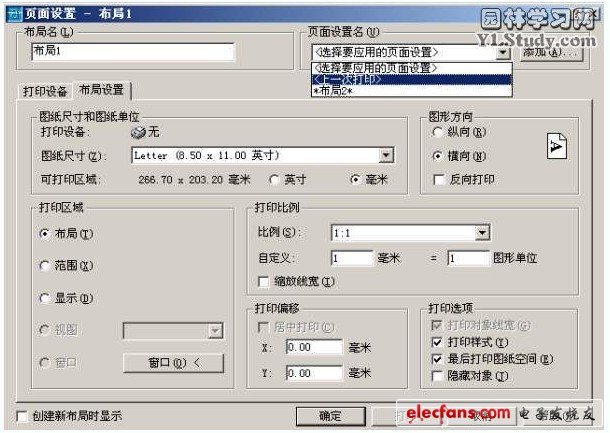 最后,在對頁面設(shè)置完成以后還要進(jìn)行最后一項工作,就是“頁面設(shè)置”不要以為這個工作無所謂,設(shè)置好以后你還可以使用CAD的輔助工具進(jìn)行批量打印,不過這要求一個布局里面只有一張圖,并且這張圖的打印設(shè)置已經(jīng)設(shè)置完成。鼠標(biāo)右單擊“布局1”在快捷菜單中選擇“頁面設(shè)置”。