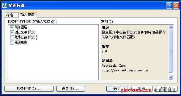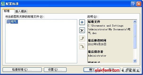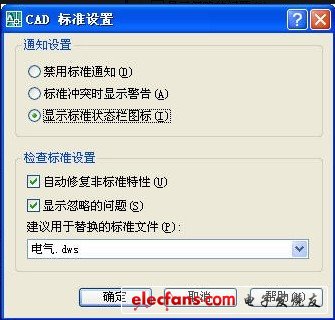 在AUTOCAD中輸入standards命令,或在經(jīng)典界面菜單中選擇:工具>CAD標(biāo)準(zhǔn)>配置,可以打開“配置標(biāo)準(zhǔn)”對(duì)話框,如下圖所示: