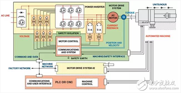 型號與類型進(jìn)行配置,并通過內(nèi)置算法優(yōu)化電機(jī)效率,并監(jiān)控驅(qū)動器的工作情況。 此外,一個(gè)不斷增長的趨勢是將驅(qū)動器連接到工廠網(wǎng)絡(luò)中,以便通過協(xié)調(diào)多個(gè)驅(qū)動器的工作進(jìn)一步改善效率。 4、用于高效運(yùn)動控制的精密隔離