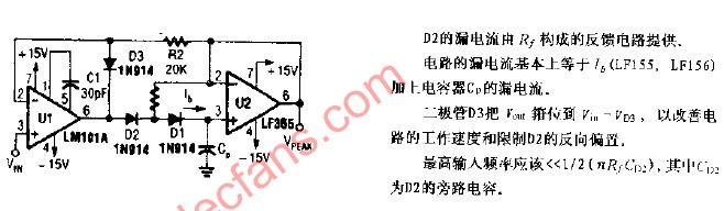 具有長記憶時間的精密峰值電壓檢波器電路圖
