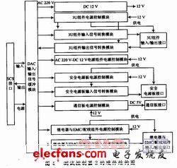 測試控制器2的原理框圖如圖4所示,對應(yīng)于3U組件測試,主要包括電源控制、輸入信號轉(zhuǎn)換、輸出信號轉(zhuǎn)換等模塊。對應(yīng)于AC 220 V-DC 12 V電源組件和通信板測試,主要包括電源控制模塊。對應(yīng)于安全電源板和繼電器組件測試,主要包括電源控制、輸入信號轉(zhuǎn)換等模塊。