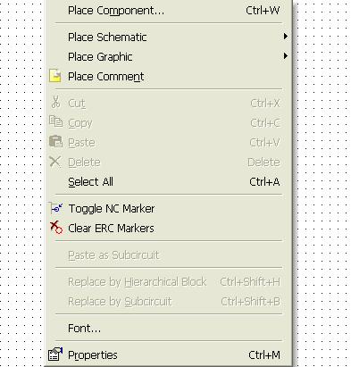 在電路窗口的空白處點(diǎn)擊鼠標(biāo)右鍵,將出現(xiàn)如下菜單(圖二):